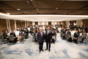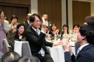 正装で集まり、日常とは少し違う特別な空間です。